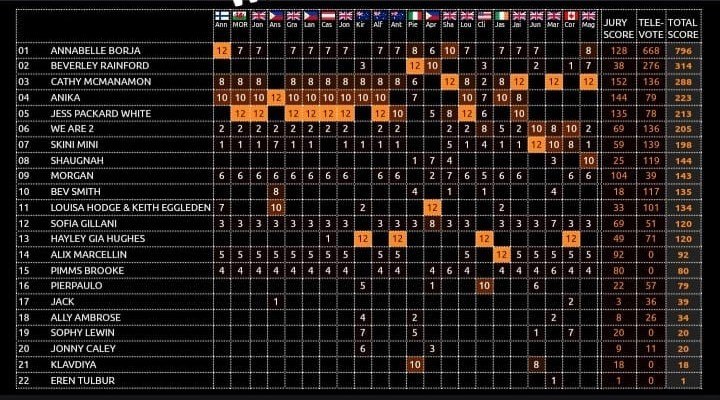 TAF contacted DCU ES through its Facebook page to request the names of the judges and where they are based. Laurence William Brophy who is the Chairperson of DCU Eurovision 2019/20 provided this list: Jason from Ireland Cassandra - France; Morgan - Wales; Louisa and Keith - UK; Beverley - Spain; Anika - the Philippines; Pierpaolo - Italy; Anna - Finland; Jonny Caley - UK; Cassim - Austria; Alfred Cauker - Australia; Shar - UK; Anthony Zaia - Australia; Clint Rhodes - USA; Jaimie Crock - UK; June Anderson - UK; Maria Peterson - UK; Corey - Canada and Maggie Robson - UK.