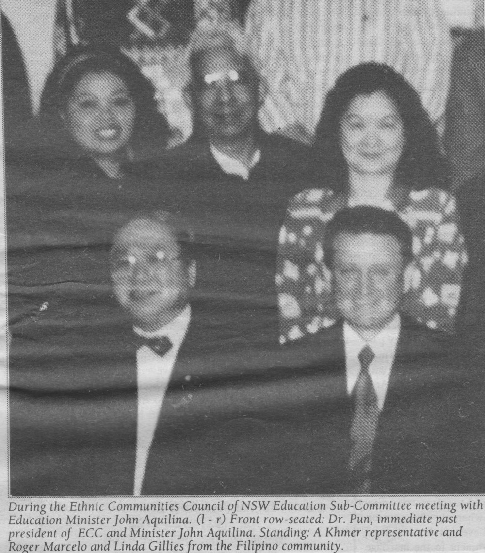 At the time, I was in the Education network of the Ethnic Affairs Commission. I wrote a letter of petition, with Roger Marcelo as a co-signatory, to Tom Campbell, the then Head of the NSW Saturday School of Community Languages to request the inclusion of Filipino in one of the SSCL centres. Fortunately, we succeeded in securing its inclusion in the languages offered at the Bankstown SSCL.