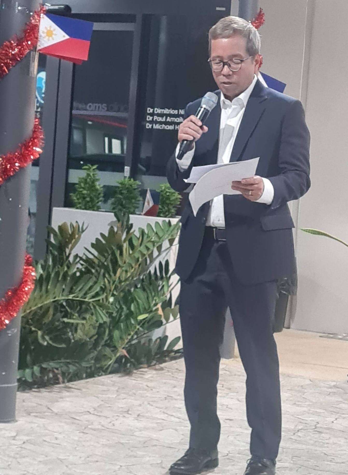 Hon Consul Gabutero gave the welcome talk where she thanked everyone for attending the event. She introduced afterwards Ambassador Morales. He expressed pride and congratulated everyone for the contributions to the Australian society in various areas of professions. He mentioned being surprised and disappointment that the Philippines was included in a leaked proposal to restrict immigration from 13 countries deemed "high risk" regarding national security and social cohesion. He said that he has expressed through appropriate channels his concern with the proposal. He enjoined all to continue their great work which contributes to the strength of the Filipino-Australian relationship which was started by the pioneer pearl divers in Broome many years ago. He also highlighted the need for Fil-Aussies to be hold positions in the Federal government with Atty Gabutero as a good example to fulfil the role.